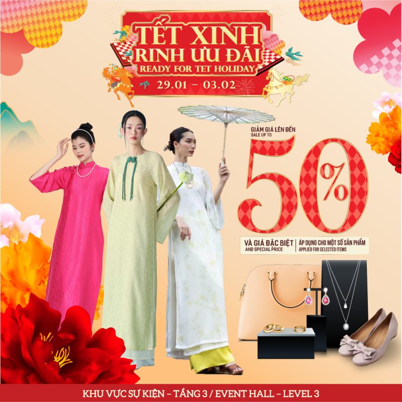 🎁 Giá đặc biệt cho nhiều sản phẩm từ áo dài, thời trang thanh lịch, giày dép, túi xách đến trang sức & phụ kiện, tất cả đều sẵn sàng giúp bạn tỏa sáng trong những ngày đầu năm mới.