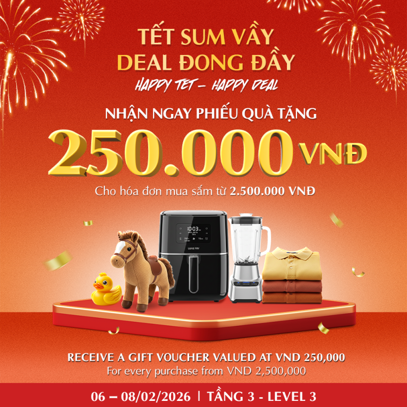 Nhận ngay phiếu quà tặng trị giá 250.000 VNĐ cho hóa đơn mua sắm từ 2.500.000 VNĐ tại Tầng 3, TTTM Takashimaya