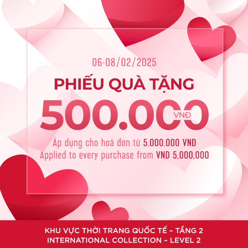 Nhận ngay phiếu quà tặng trị giá 500.000 vnđ cho mỗi hóa đơn từ 5.000.000 vnđ tại Khu vực Thời trang quốc tế – Tầng 2, TTTM Takashimaya