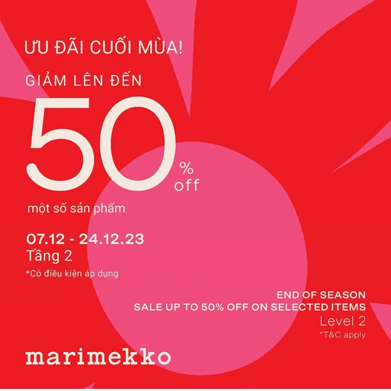 MARIMEKKO tri ân gửi đến bạn Ưu Đãi Cuối Năm – Giảm đến 50% áp dụng theo danh sách sản phẩm tại cửa hàng.