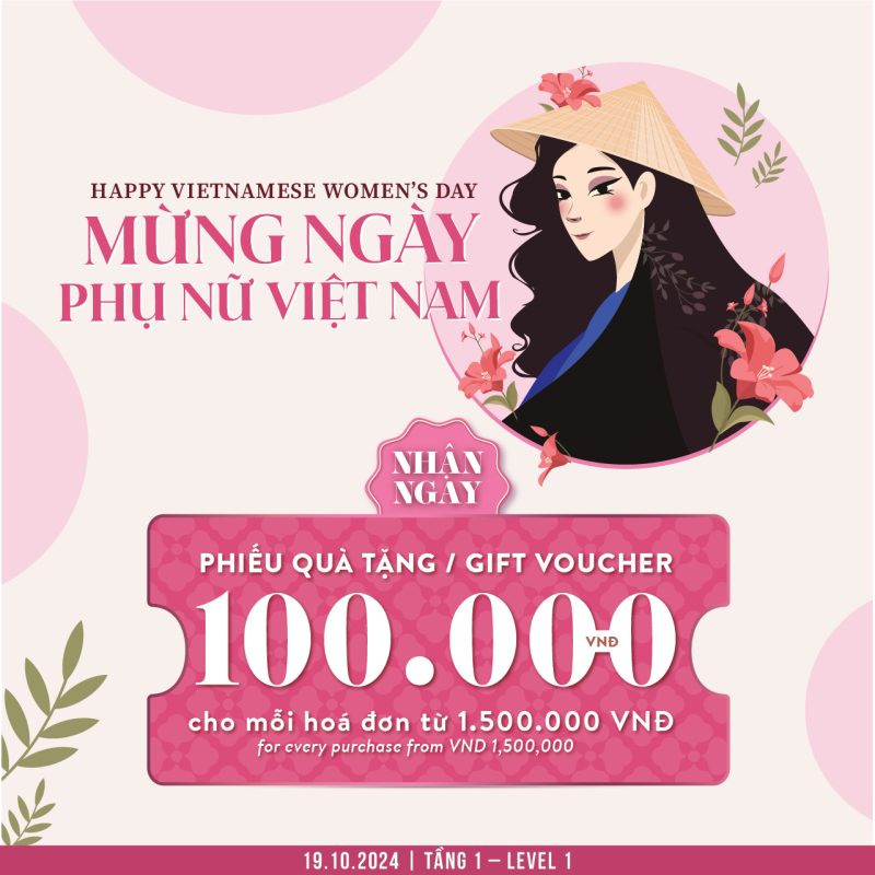 Tặng phiếu quà tặng trị giá 100.000 VNĐ cho hóa đơn từ 1.500.000 VNĐ tại Tầng 1, TTTM Takashimaya (trừ các quầy Polo Ralph Lauren, Hermes, Montblanc và Dior)