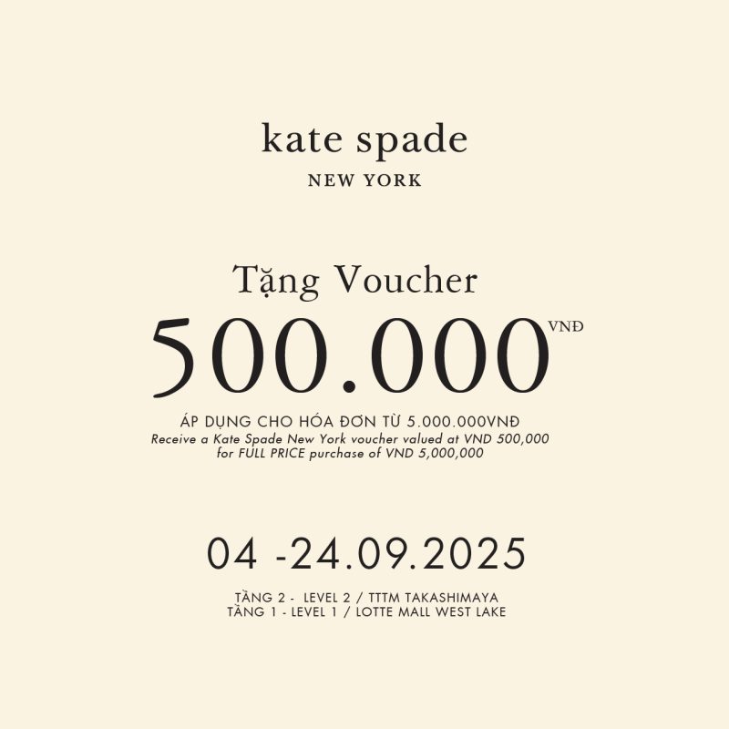 Nhận 01 phiếu quà tặng trị giá 500.000 VNĐ cho hóa đơn mua hàng nguyên giá từ 5.000.000 vnđ tại cửa hàng Kate Spade New York