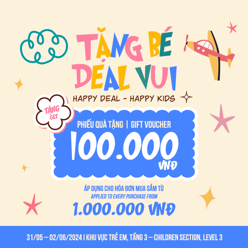 Nhận ngay phiếu quà tặng 100.000 VNĐ cho hóa đơn mua sắm từ 1.000.000 VNĐ tại Khu vực trẻ em và khu vực sự kiện, Tầng 3, TTTM Takashimaya