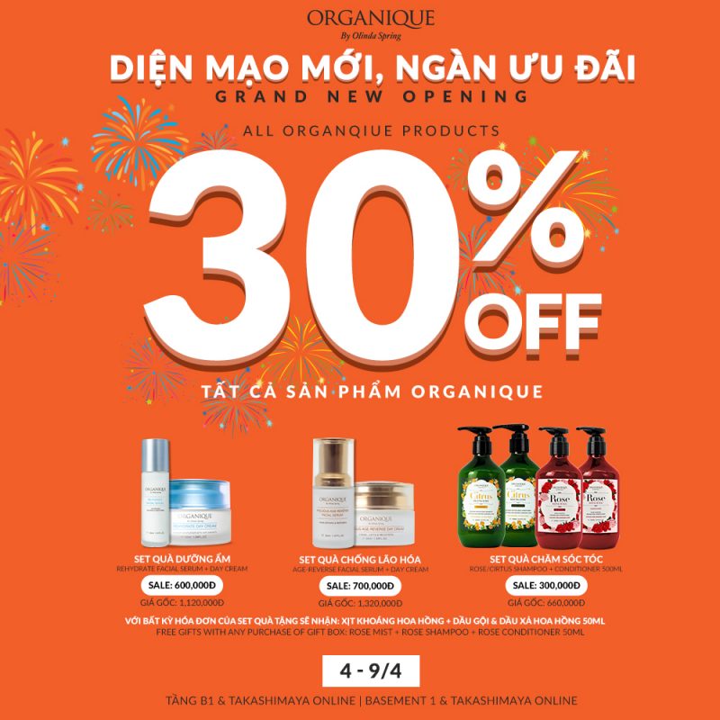 Áp dụng tại: https://online.takashimaya-vn.com/organique-brand.organique & gian hàng organique – tầng B1, TTTM Takashimaya.