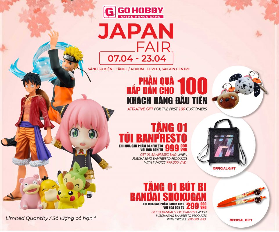 Tham gia mua sắm cùng GO HOBBY tại sự kiện JAPAN FAIR từ 7/4 – 23/4 tại Sảnh sự kiện – Tầng 1, Saigon Centre.