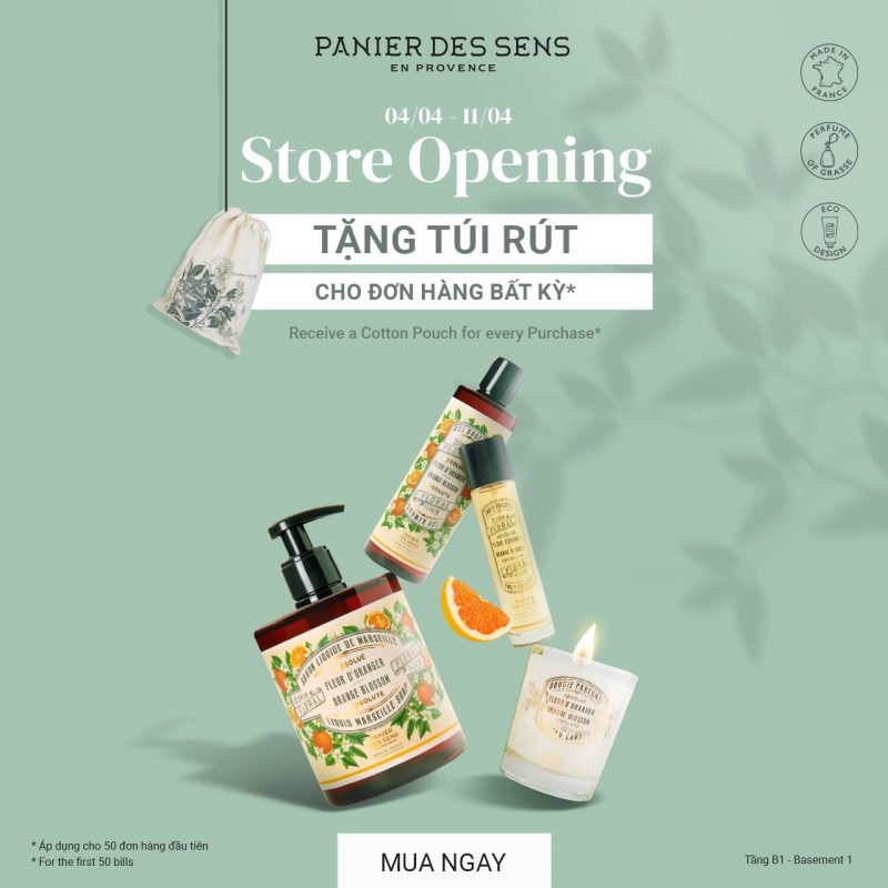 Chương trình ưu đãi áp dụng từ ngày 04 – 11/04/2023. Hãy trở thành những vị khách đầu tiên check in tại Panier Des Sens Takashimaya và sở hữu những bảo bối chăm sóc da từ Panier Des Sens bạn nhé!
