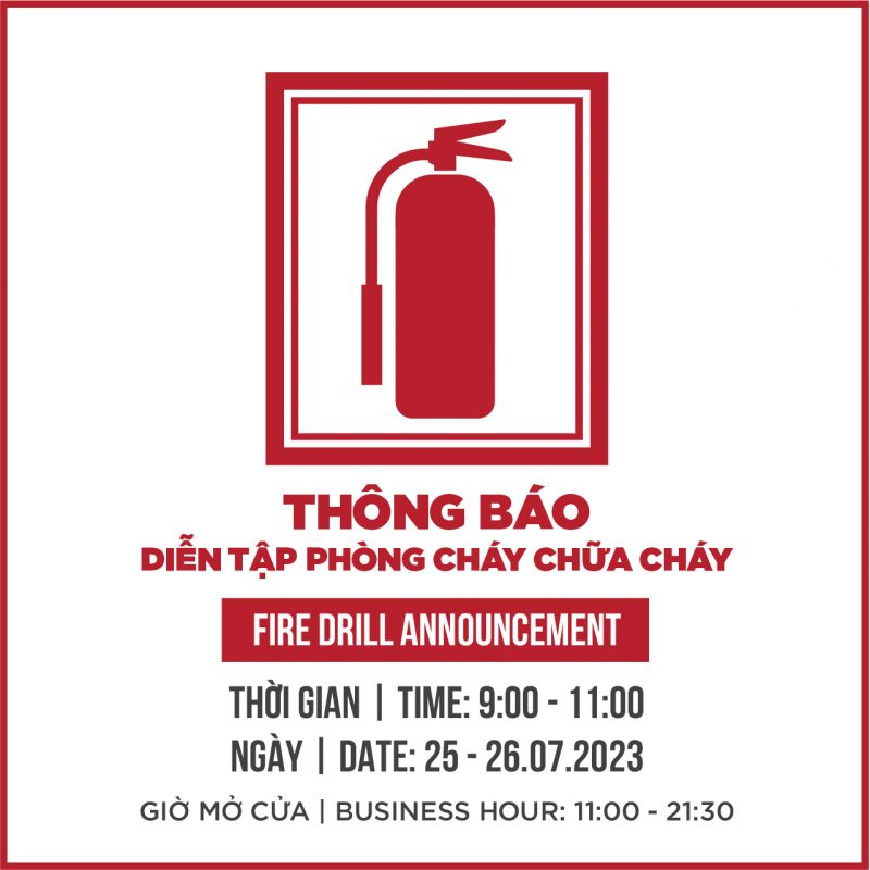 Theo đó, thời gian hoạt động (dự kiến) trong 02 ngày diễn tập PCCC (25-26/07) tại TTTM Takashimaya như sau: 11h – 21h30.