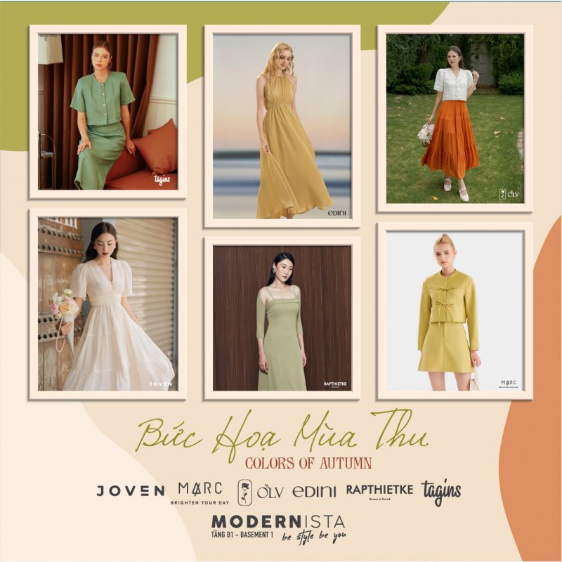 Mùa thu hiện lên với những gam màu như caramel, xanh rêu, xanh cốm, hay nâu nhạt…thật nhẹ nhàng. Từ những tone màu lãng mạn đó các nhãn hàng thời trang tại tầng B1 như JOVEN, MARC, OLV, EDINI, RAPTHIETKE, TARGINS đã cho ra mắt các BST chào Thu đầy ấn tượng, phong phú từ chất liệu đến kiểu dáng, thích hợp để diện ra phố, đi làm, hẹn hò, … Mang đến sự thanh lịch, dịu dàng tuyệt đối cho người diện.
