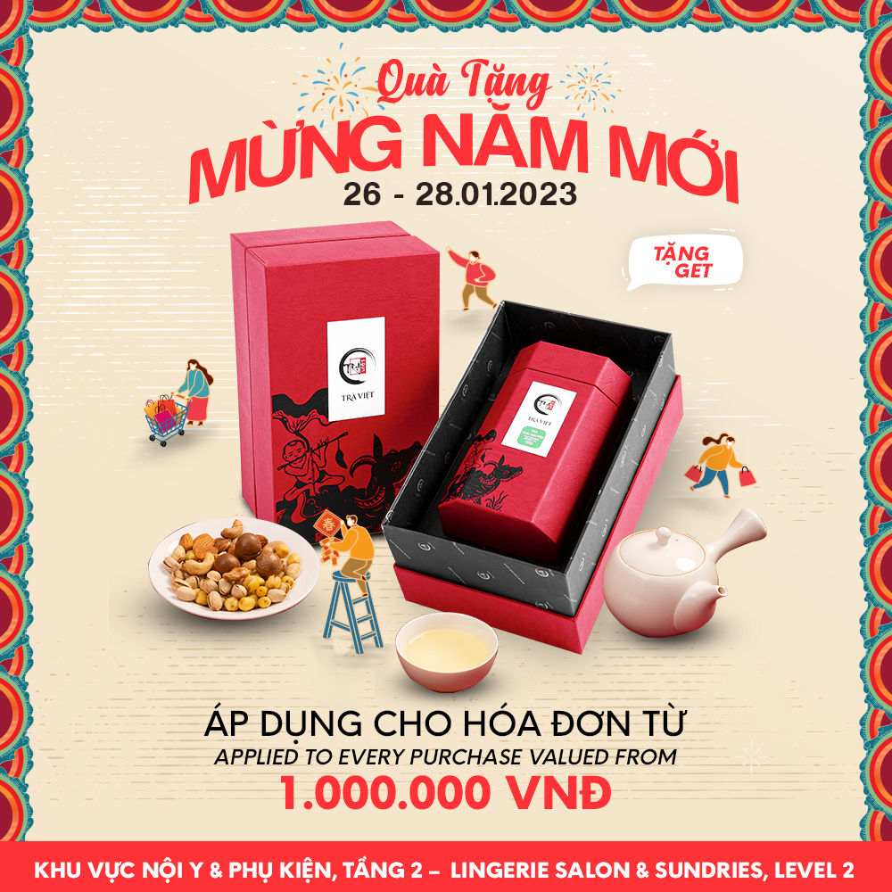 TẶNG 01 HỘP TRÀ TÂM PHÚC THÁI NGUYÊN CHO HÓA ĐƠN MUA SẮM TỪ 1.000.000 VNĐ TẠI KHU VỰC NỘI Y VÀ PHỤ KIỆN, TẦNG 2/GET 01 TÂM PHÚC THÁI NGUYÊN TEA BOX FOR THE PURCHASE OF VND 1,000,000 ON THE LINGERIES & SUNDRIES ON LEVEL 2
